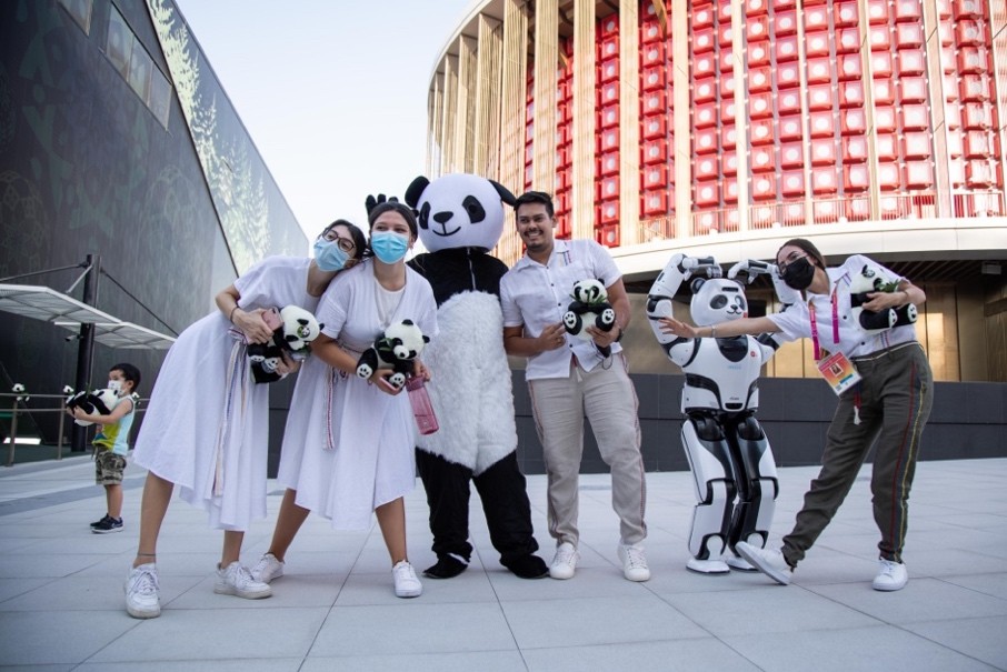 值得一提的是,當地時間10月4日,迪拜世博會中國館的第一個主題周活動——中國大熊貓保護主題展正式亮相。展覽內容為中國在大熊貓野化培訓與放歸、大熊貓國際科研合作等領域的成果,讓觀眾具體瞭解中國生態保護理念和措施。主題展期間,中國大熊貓保護研究中心還將在迪拜舉行“空降2020只大熊貓”“熊貓快閃”等活動。中國館“和平友好使者”——優必選熊貓機器人優悠全程參與此次活動,並走出中國館,在館外廣場上和觀眾們見面,打太極、比心,吸引了大批遊客駐足,爭相與“國寶”合影留念。