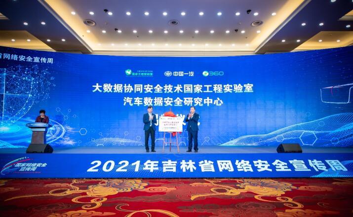 近日, 2021年吉林省網絡安全宣傳週在長春開幕。開幕式現場,中國一汽黨委常委、副總經理雷平與360集團(股票代碼:601360.SH)首席運營官兼360政企安全集團首席執行官葉健共同為國內首個汽車領域數據安全研究中心“大數據協同安全技術國家工程實驗室——汽車數據安全研究中心”揭牌。中國一汽體系數字化部副總經理龔禮洲、智能網聯院副院長周時瑩、信息安全管理部總監劉明以及行業領域領導共同見證。