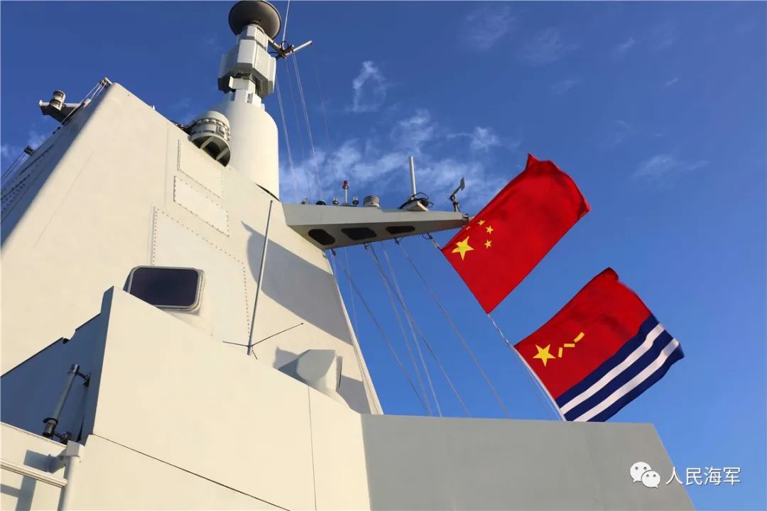 ▲當地時間10月15日,中俄“海上聯合-2021”演習在俄羅斯彼得大帝灣附近海域展開多個課目演練。這是中國海軍南昌艦迎風飄揚的國旗。李唐 攝