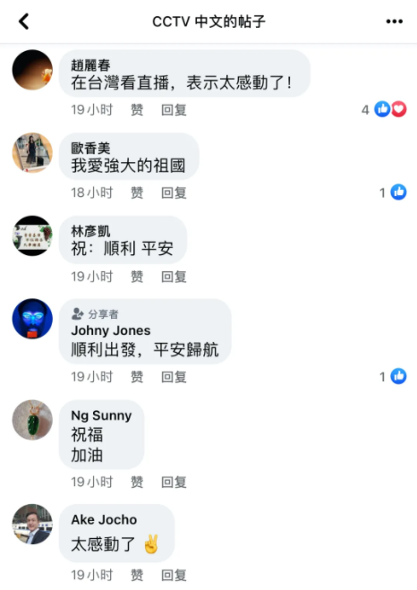島內網友也紛紛留言表示“與有榮焉”。有網友留言表示“在台灣看直播,太感動了!”“我愛強大的祖國”。
