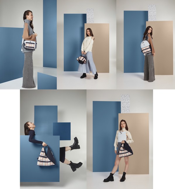 除了温暖經典格紋設計,系列包袋更巧妙運用不同色塊碰撞,打造簡約高雅質感。大面積淺灰底色上,點綴淡雅清新的藍粉拼色,秋冬暖色的拼接與碰撞,簡約卻不單調,搭配基礎款針織服飾單品,解鎖幹練明快的新季造型。