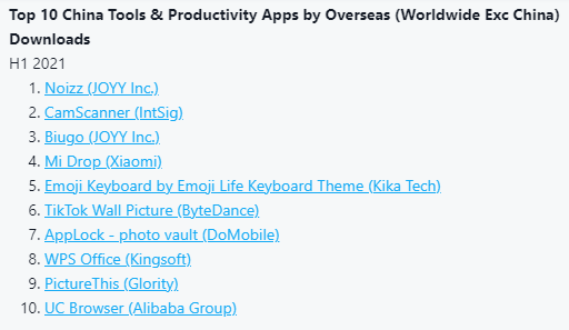 在2021年上半年的排行榜中,掃描全能王位列中國工具類App出海下載量的第二位,僅次於視頻編輯類App Noizz,在用户支出排行榜中僅次於PictureThis。