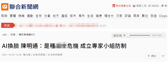 另據台灣“TVBS新聞網”報道,涉嫌利用換臉軟件製作不雅影片牟利的網紅“小玉”,18日被警方逮捕,當晚蔡英文立即發文稱“這些假訊息和影片有一天都可能傷害到你我”,她還稱將針對換臉色情犯罪等多種類型的網絡性別暴力,重新盤點法規,研擬推動修法工作。