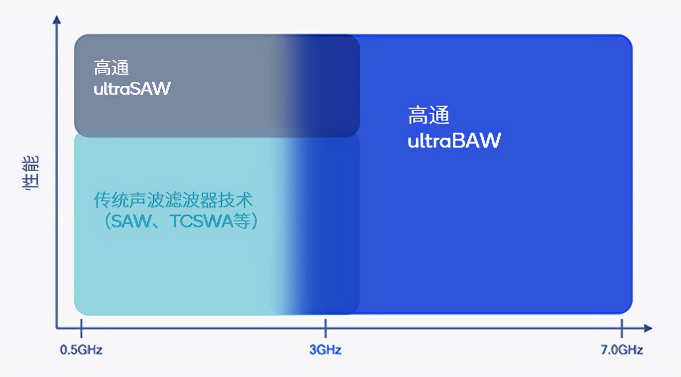 全新高通ultraBAW射頻濾波器延續並擴展了公司此前推出的高通ultraSAW 技術的領先性能。高通ultraSAW支持從600MHz到2.7GHz的低頻段,高通ultraBAW則支持2.7GHz到7.2GHz,從而將中頻段連接擴展到7GHz以下。高通ultraBAW還支持高達300MHz的超寬信道、5G和/或Wi-Fi網絡共存、以及更快的下載和上傳。