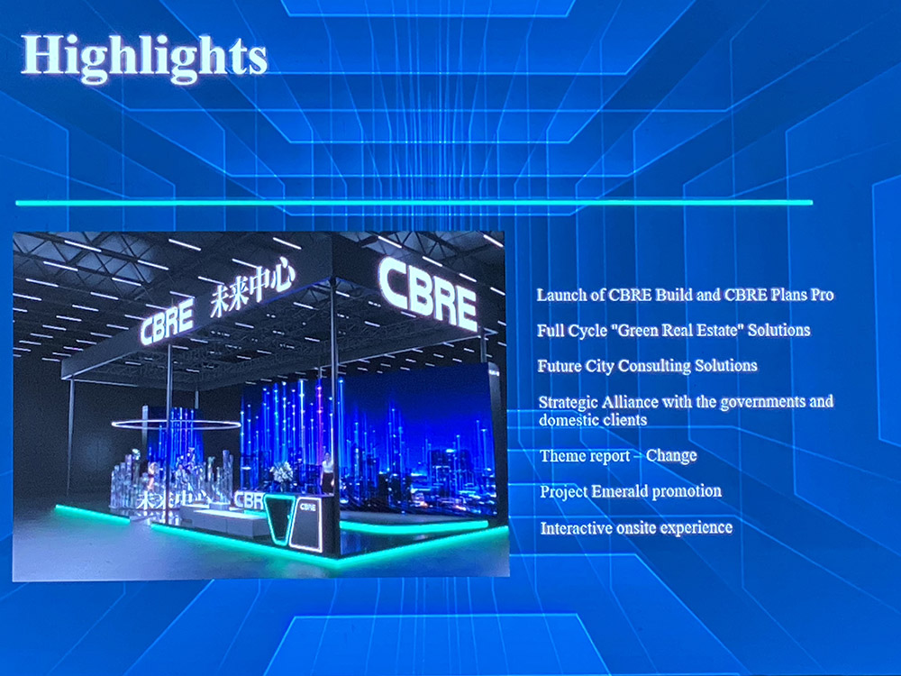 財富500強企業世邦魏理仕北亞區市場及企業傳訊部資深董事肖惟珂在宣介會上透露,該公司將在本屆進博會上亞洲首發CBRE Build虛擬樓宇探索平台,基於VR、大數據、人工智能等前端科技,重新定義空間探索,將尚未存在的、正在重新定位的、翻新的內部空間,結合外部空間進行3D可視化呈現,進一步有效推動綠色科技和智慧城市的結合。