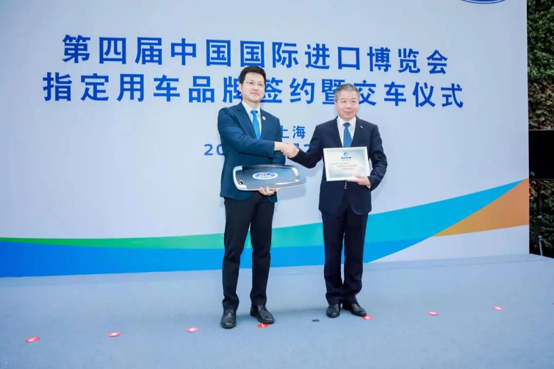 10月21日下午,在第四屆進博會還有兩週之際,首批接待保障用車正式交付,進口博覽局與福特汽車(中國)有限公司簽署合作協議。福特公司成為“第四屆中國國際進口博覽會指定用車品牌”,並簽約參展第五屆進博會。
