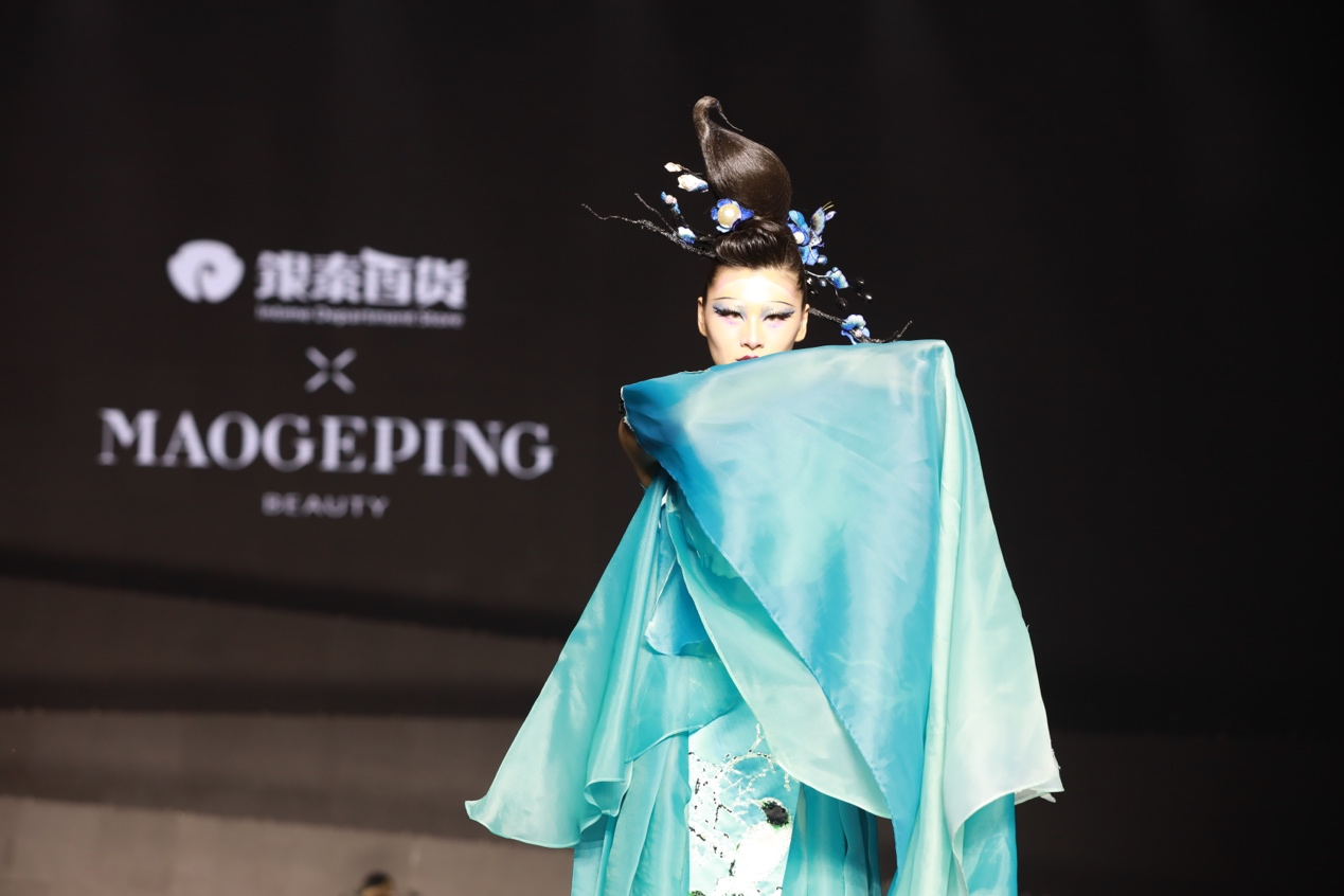 今年特別的秀場演出更是將大秀的國風氛圍感拉到極致。刀馬旦京劇表演和毛戈平國風妝容秀輪番上演,東方大劇mix時尚彩妝秀,均是極富力量感和色彩感染力的展示。此次毛戈平在秀場上展示的妝容秀,這也是毛戈平妝容秀與銀泰百貨的第二次合作。