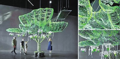“超級樹”(SuperTree)是由倫敦的生態邏輯工作室(ecoLogicStudio)設計的一個藻類養殖農場原型。樹木是當前城市圈基礎設施的一部分,而“超級樹”則重新利用了樹的原始形態,將其轉變為高分辨率、高生產力的光生物反應器,能夠將人類新陳代謝與微藻生態循環聯繫起來。能量流、物質流、信息流在整個系統中交匯,使“超級樹”形成了一個自給自足的微型生態系統。
