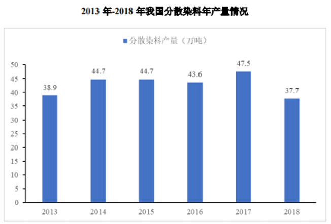 中國染料工業協會2018年公佈的數據顯示,國內分散染料產量佔46%,活性染料佔33%。分散染料的佔比最大,原因是分散染料由於其特殊的結構,成為了聚酯纖維(滌綸)的首選染料。