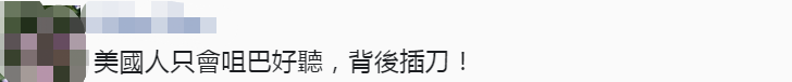 而部分島內網友卻認為:美國人只是嘴巴好聽,背後插刀!↓