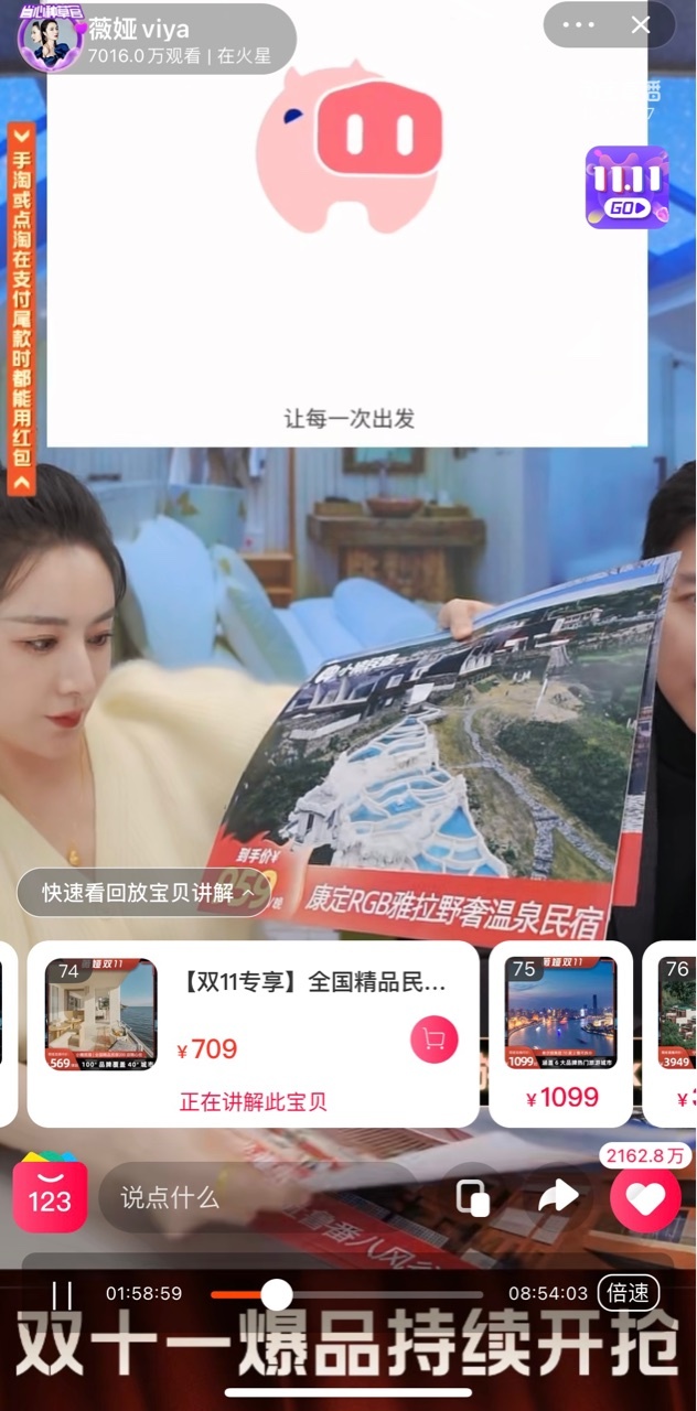 宋虓虓説,除了客羣匹配,飛豬帶來的薇婭直播間權益、雙11流量支持等政策,也給他的民宿、中谷村帶來了大量的訂單和潛在遊客。“雖然雙11還沒過完,但從現在的結果來看,明年上半年,我和中谷村的鄉親們心裏有底了!”