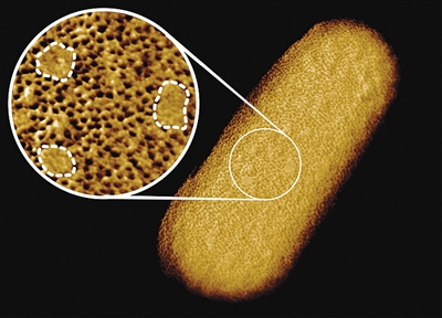 為了更好地理解這一結構,科學家們用一根針尖只有幾納米寬的微小的針在活大腸桿菌上劃了一道。由此得到的細菌表面的分子結構圖像顯示,細菌的整個外膜都擠滿了由蛋白質形成的微孔,這些孔允許營養物質進入而阻止毒素進入。