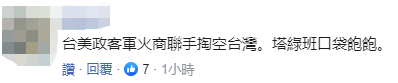 更有網友表示:台美政客軍火商聯手掏空台灣,民進黨口袋飽飽。↓