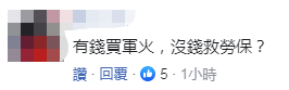 也有網友質疑,“(民進黨當局)有錢買軍火,沒錢就勞保!”↓