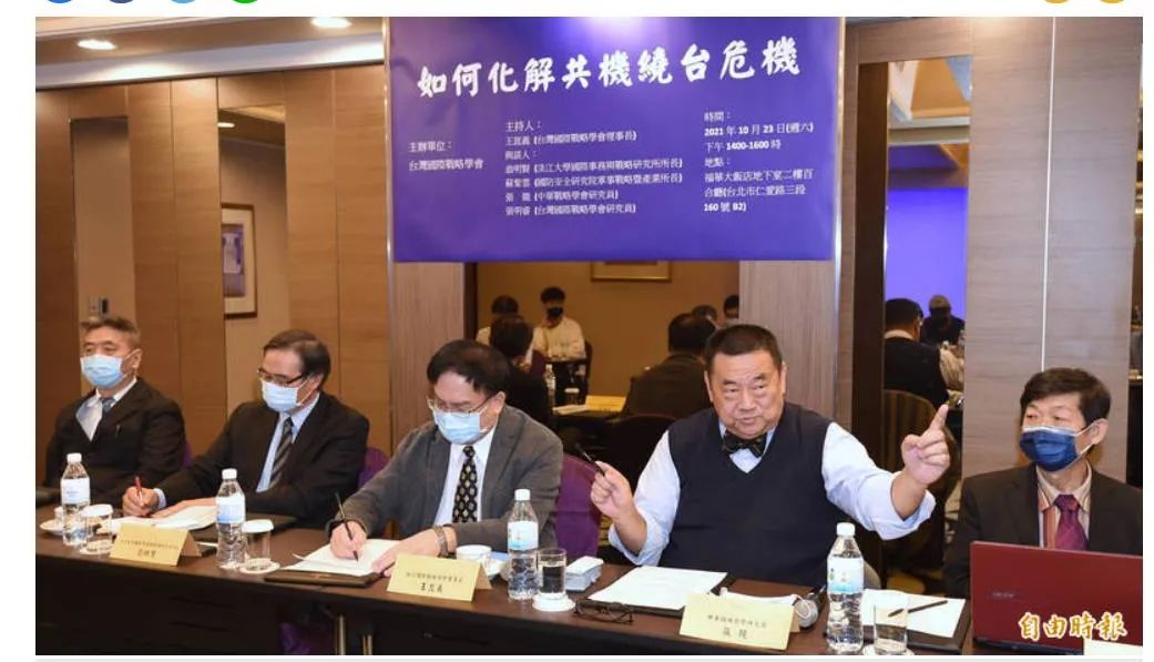 日前,台“國際戰略學會”舉辦“如何化解共機繞台危機”座談會的現場。