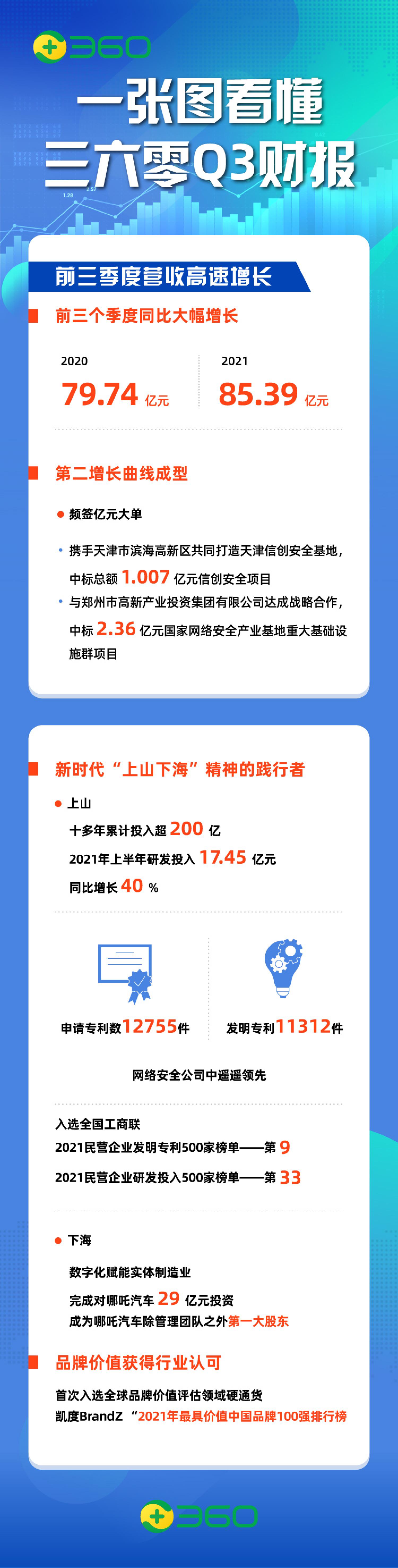 三六零發佈財報:前三季度營收85.39億元 同比增長7.09%
