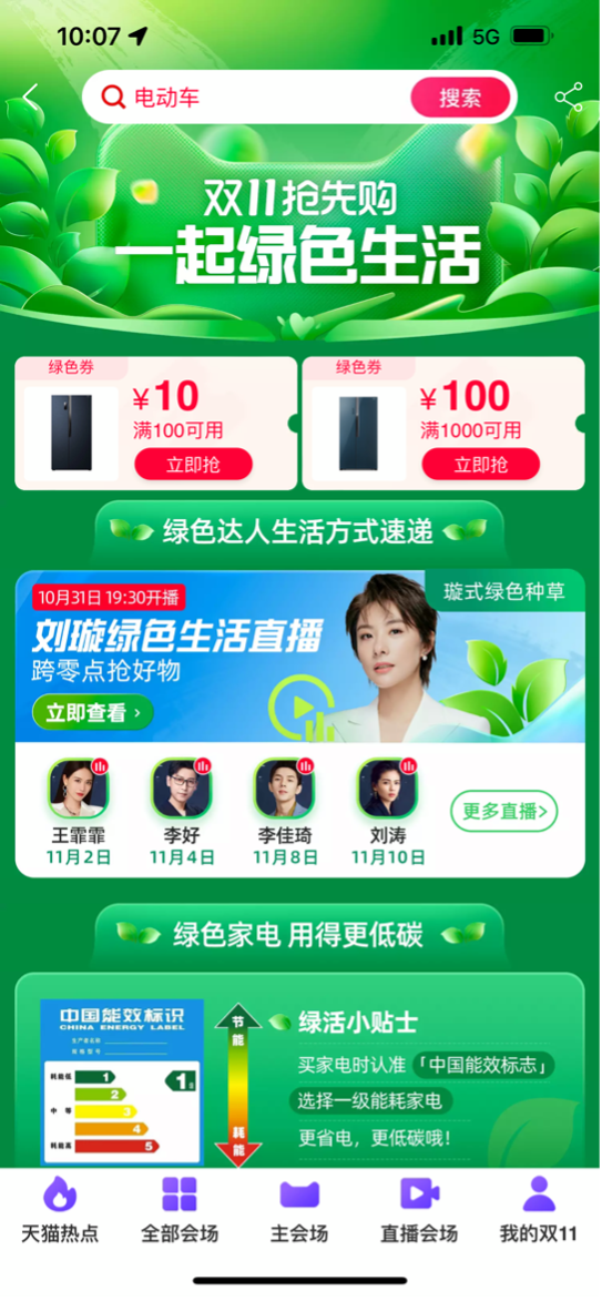 天貓雙11首個綠色會場上線 覆蓋四大行業50萬款商品