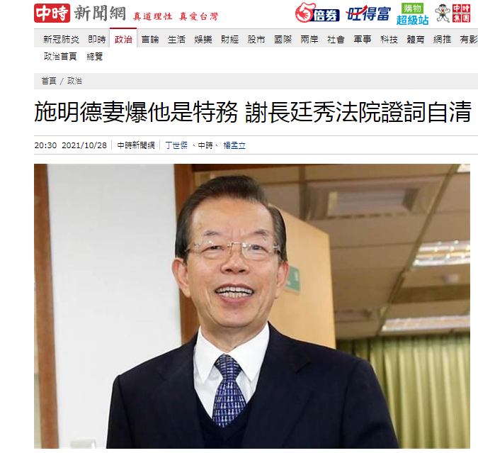民進黨前主席施明德的太太陳嘉君日前在臉書披露稱,前“調查局副局長”高明輝曾告訴她謝長廷是特務,“不僅對我説,在法庭上也這樣説”。