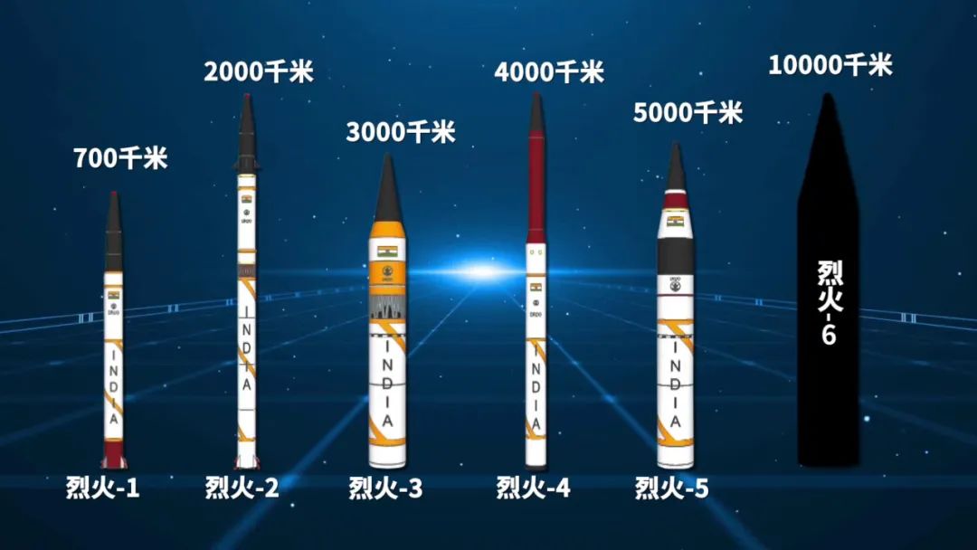 印度從上世紀80年代開始研製“烈火”系列彈道導彈,目前已研製出從“烈火-1”到“烈火-5”五型導彈,射程從700千米延伸至5000千米。烈火系列每個型號開發週期在4到5年左右,美媒透露,印度還在研製“烈火-6”型導彈,射程達到10000千米,採用多彈頭設計,將具備全球打擊能力。
