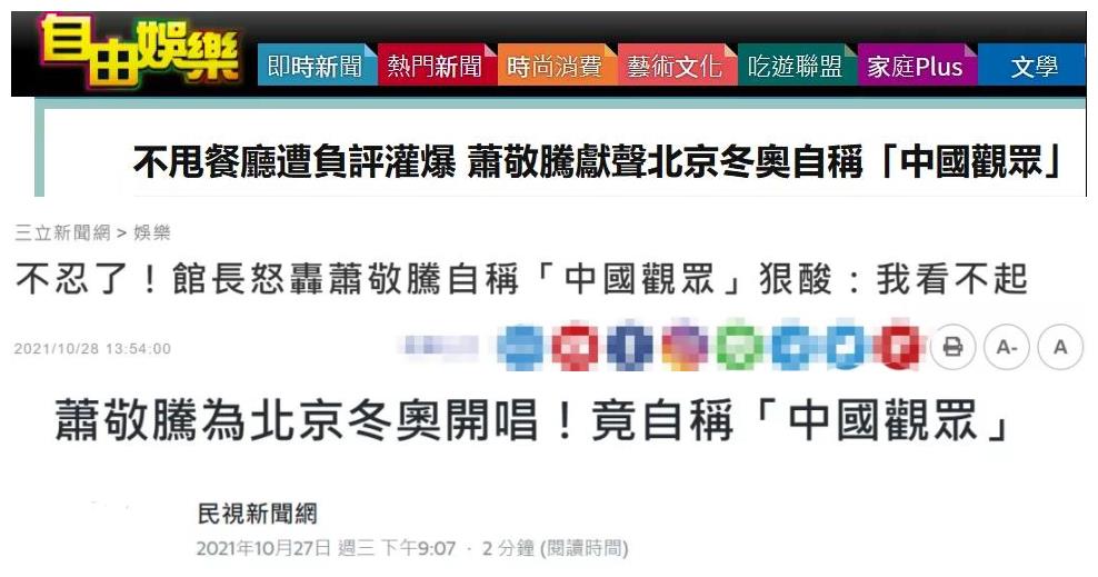 在蕭敬騰發出的這19秒視頻中,其中一句“作為中國觀眾”卻擊碎了島內一些人的“玻璃心”!“自由時報”“三立新聞網”“民視新聞網”等台灣“綠媒”提到此事,都是酸氣撲鼻。