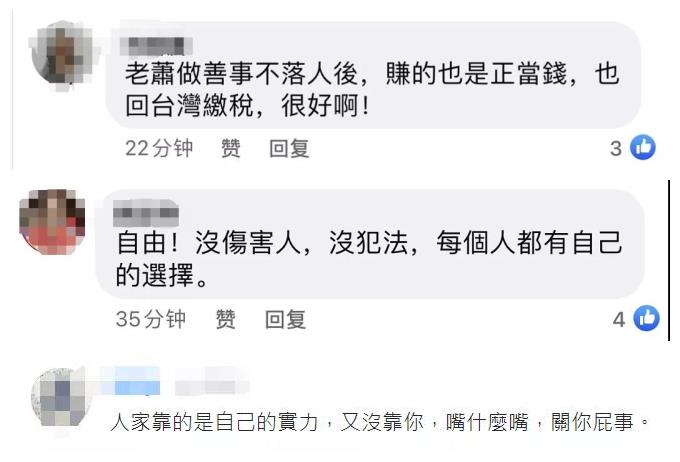 對於“綠媒”針對蕭敬騰的酸言酸語,有台灣網友直指它們是在“搞分化”,還有不少人為蕭敬騰打抱不平併為他加油,“靠自己的名氣與實力去大陸賺錢又怎麼了?”“賺的也是正當錢,很好啊!”