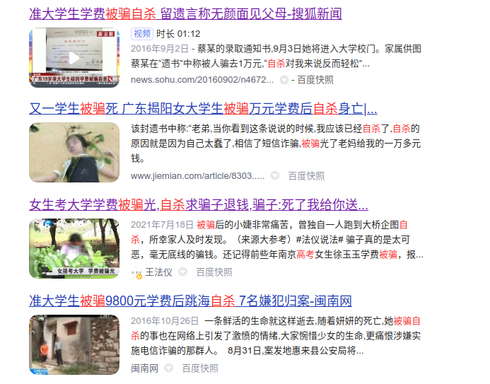 更不能忘記,國內已發生多起學生被騙後自殺死亡的悲劇。
