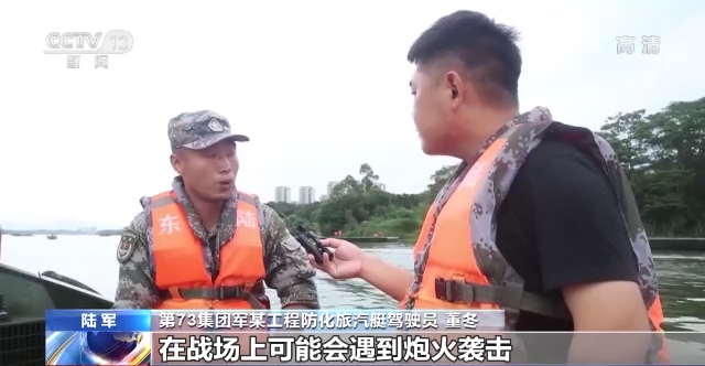 *第73集團軍某工程防化旅汽艇駕駛員 董冬:*在戰場上,可能會遇到炮火襲擊跟空中飛機偵察,也可能會遇到電磁波的干擾。結合我們這兩岸實際情況,跟我們的江河水流情況,也結合各類的障礙物情況,完成我們渡河工程保障任務。