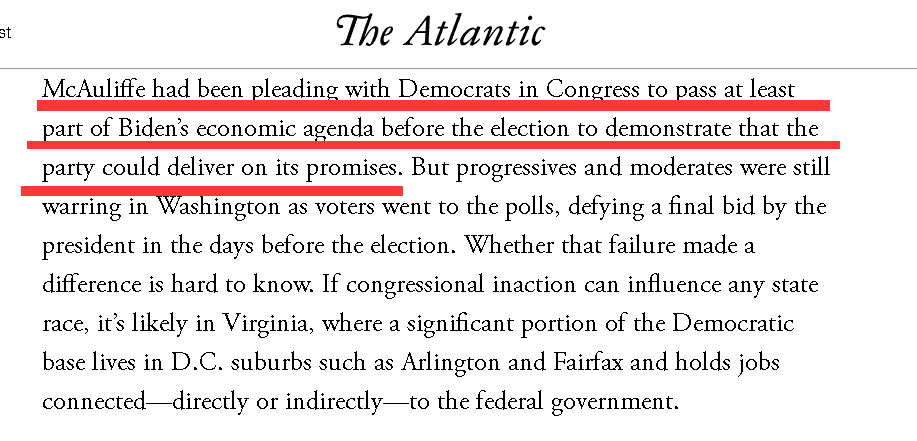 美聯社還在該文中指出,情況確實對拜登很不樂觀,因為他的政府以及民主黨所控制的美國國會至今還沒有通過任何一項拜登承諾的主要公共政策或社會福利開銷。這一點也得到了美國《大西洋月刊》一篇分析報道的確認,該文透露民主黨的候選人馬可利夫曾在選舉前懇求拜登和民主黨控制的國會至少通過一項標誌性的公共政策法案,以證明民主黨可以兑現承諾。