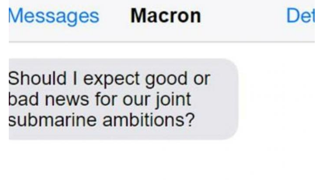馬克龍還在短信中問:“對於我們的聯合潛艇計劃,我應該期待好消息還是壞消息?”