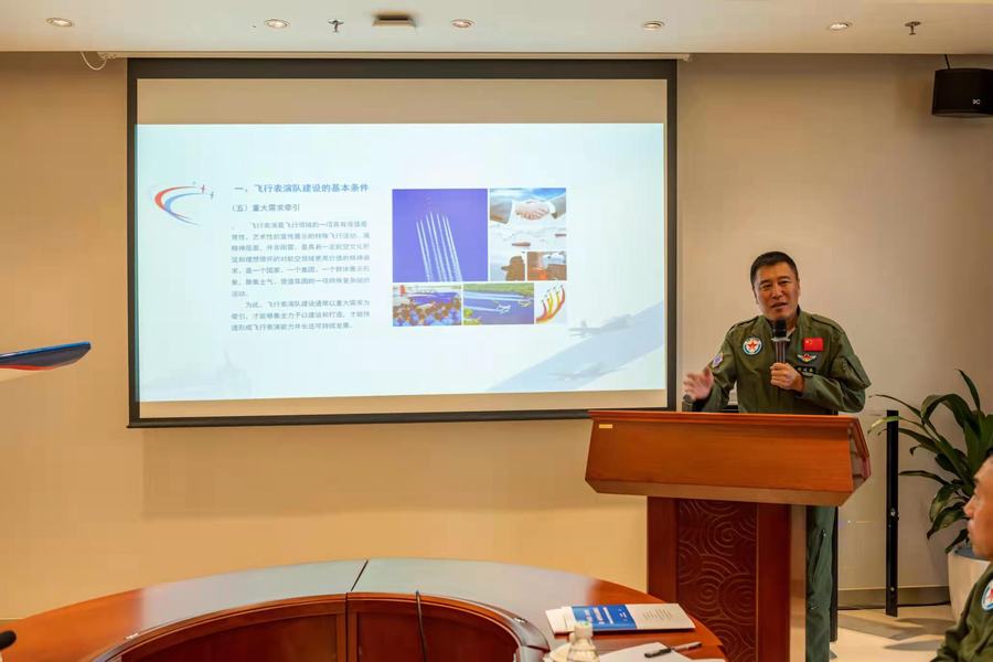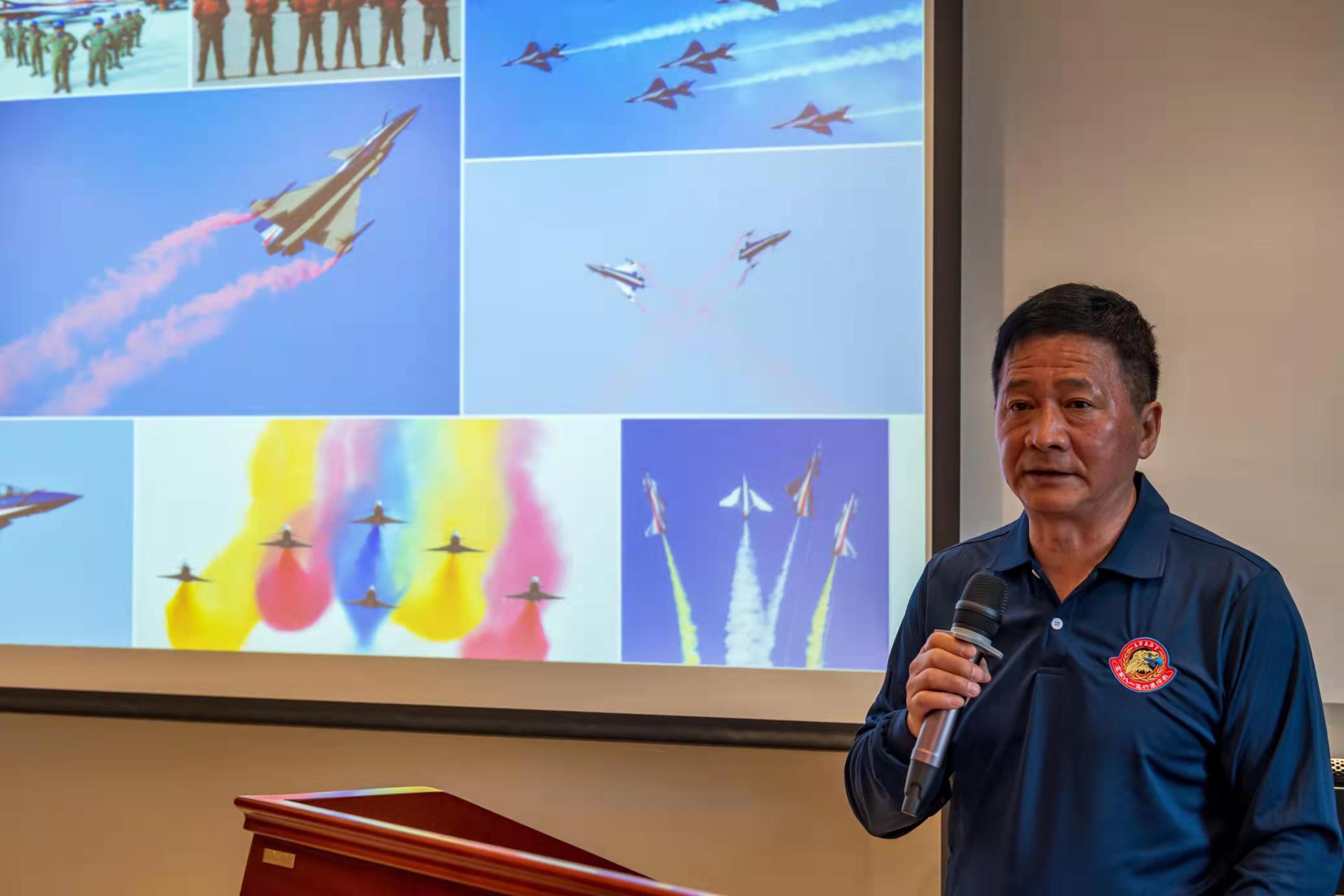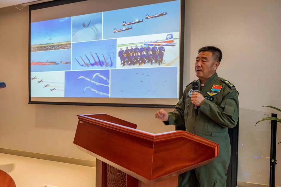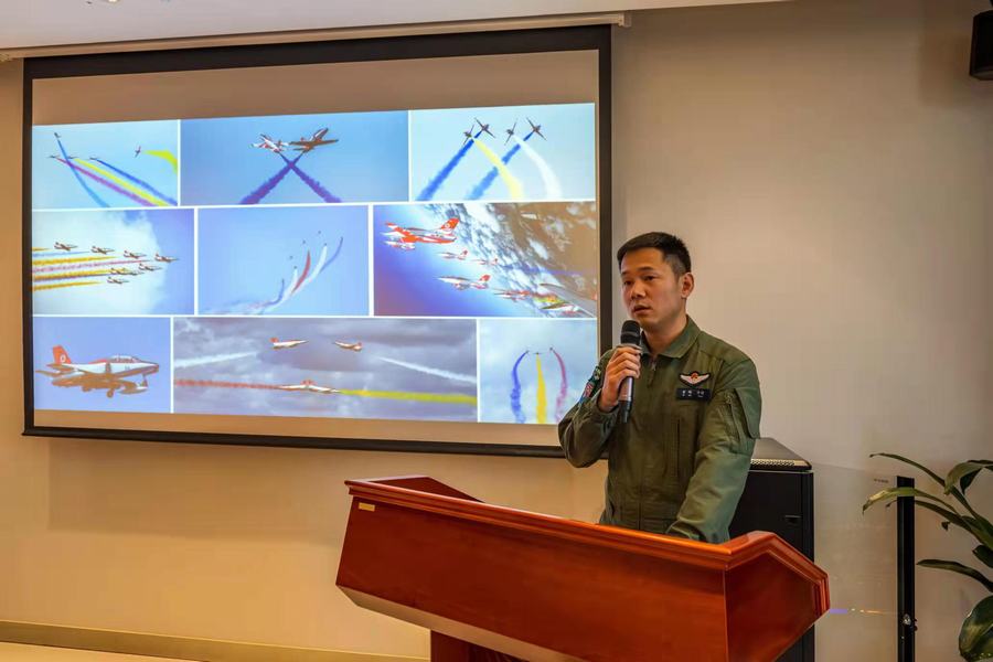 中國空軍八一飛行表演隊自成立初始,就擔負的是國家禮儀迎賓和國內重大活動的飛行表演任務,被譽為中國的“藍天儀仗隊”。原八一飛行表演隊隊長李秋演講的內容是《飛行表演的性質及意義》,分享了他在八一飛行表演隊的飛行經歷與感受,指出飛行表演是國家綜合實力、軍隊裝備、飛行員技術戰術水平的綜合展示,希望更多的飛行表演隊湧現,更多的精英人才投身進來,傳播航空情懷、傳承愛國精神,點燃青少年的航空報國熱情,為我國的航空事業發展貢獻新的力量。