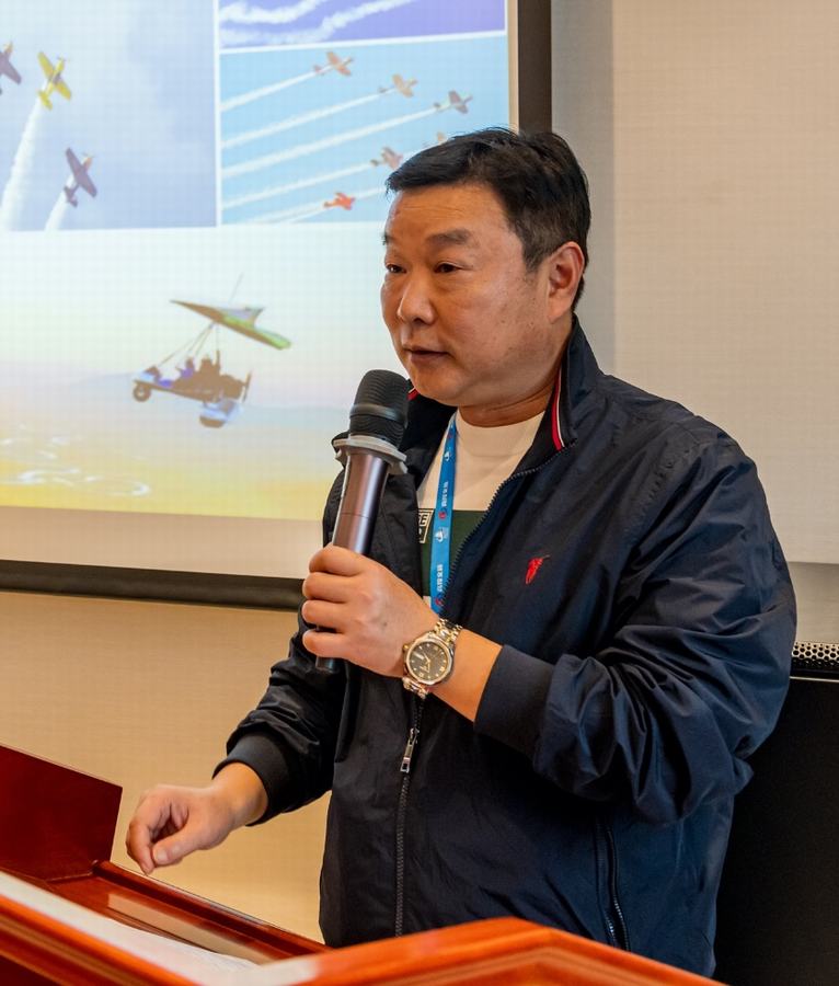 南昌航空大學民航學院院長、紅星飛行表演隊隊長鬍延春最後進行了《飛行表演隊的建設與發展》的主題報告。作為原空軍航空大學飛行訓練處長、飛行研究所所長,2010年參與論證組建空軍紅鷹和天之翼飛行表演隊的工作,並於2020年成功組建了中國第一支初教6民間飛行表演隊——紅星飛行表演隊。報告中,他以多年的飛行組織指揮和教學管理經驗為基礎,結合實際案例,闡述了飛行表演隊建立的基本條件和規律、人才的選拔標準與培養模式機制,論述了紅星飛行表演隊成立的初衷和意義,明確了紅星飛行表演隊建設目標,提出了以飛行人才培養為核心,以國防航空教育為目的飛行表演隊建設發展新思路。