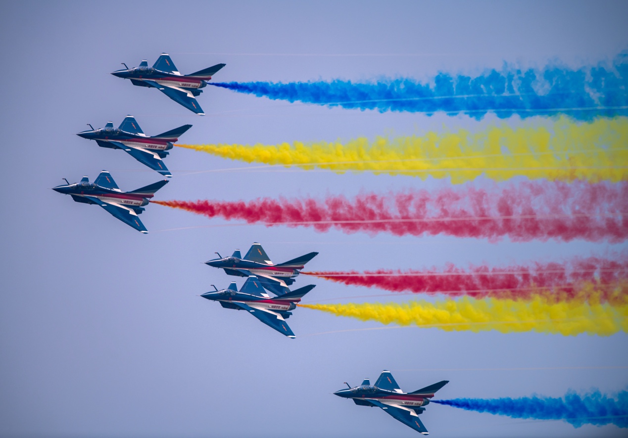 “天之翼”飛行表演隊指揮員孫玉志,“紅鷹”飛行表演隊隊員、飛行大隊長金皓,也分別對其所在的“天之翼”飛行表演隊和“紅鷹”飛行表演隊進行了詳細的介紹。這兩支由空軍航空大學的德藝雙馨的飛行教官們組建而成的飛行表演隊,其成長曆史到現在的輝煌發展,都展示了飛行員們逐夢藍天的豪情與壯舉。紅鷹”飛行表演隊隊長張立斌參與了現場對話交流。