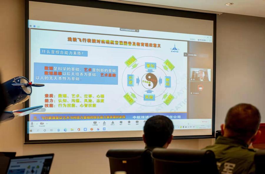 中航技進出口有限公司軍事飛行航空理論專家高俊通過視頻連線,做了《淺談飛行表演對實現航空強國普及教育現實意義》的發言,闡述了航空對於國家發展的重要意義,提出飛行表演能夠激發廣大青少年對航空和飛行的濃厚興趣,是對藝術與科技為基礎的綜合能力素質最好詮釋,有助於促進青少年直觀理解掌握科學基礎理論,為國家航空事業的發展奠定了思想文化基礎。“飛行表演是啓蒙人們認知航空強國的地位和作用,認同航空是強國的重要標誌。這些有濃厚興趣的少年有的可能進入軍隊,為強軍服務;有的進入航空院校,由於他們有飛行經歷和空中生活經驗,更有可能成為飛機設計優秀工程師,能更準確理解飛行員需要什麼樣的飛機;有的可能進入其他領域,但他們也會對航空和飛行給與更好的理解和支持。航空有了廣泛的羣眾基礎,才能實現人-機促進的航空強國。”
