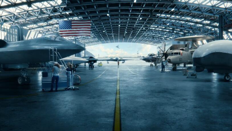 “戰區”報道稱,在宣傳片中一名女性工作人員打開了電梯門,隨後出現在眼前的是一個神秘的機庫,裏面停放着諾格公司研製的飛機——從現有機型到未來型號,其中包括RQ-4“全球鷹”無人機、E-2“鷹眼”預警機、MODEL 401“戰神阿瑞斯之子”驗證機、B-2隱形轟炸機、X-47無人機,遠處的角落裏還有一架EA-18G“咆哮者”電子戰機,遠處的天空中還疑似飛過一架B-21轟炸機。