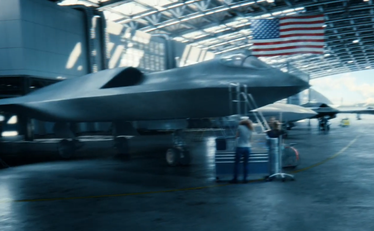 不過報道尤其關注的是離鏡頭最近的一架隱形戰機,報道推測,這看起來像是美國的六代機計劃——“下一代空中優勢”(NGAD)項目的產物。這款戰機體型很大,而且採用隱形設計,沒有與垂直尾翼,進氣道位於機身背部。雖然畫面中只能看到該機的一側,但可以推斷另一側也有相對稱的進氣道,應該是採用了雙發動機設計。