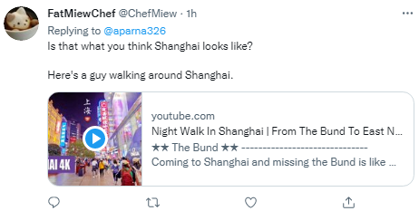 “這就是你認為上海的樣子嗎?(下面視頻)是一個人閒逛上海(的景色)。”