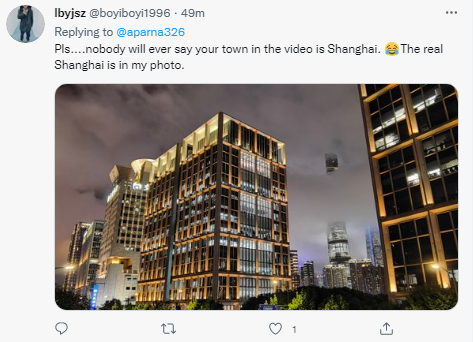 “拜託了… 沒有人會説你視頻裏這個小鎮是上海。真正的上海在我這張照片裏。”