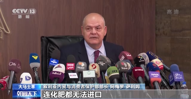 *敍利亞內貿與消費者保護部部長 阿梅羅·薩利姆:*美國和歐洲的制裁比任何人想象的都要殘酷,制裁導致我們無法進行銀行匯款,現在敍利亞銀行無法給世界上任何公司開設信用賬户,連化肥都無法進口,那些運輸化肥的船完全不能靠近敍利亞港口。
