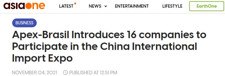 新加坡AsiaOne網站刊文稱,巴西出口投資促進局(“Apex-Brasil”)連續四年成為進博會的重要合作單位之一。在過去的幾年裏,進博會不斷給巴西企業帶來發展機遇,巴西出口投資促進局今年將帶領16家巴西食品飲料企業在博覽會上進行展示。