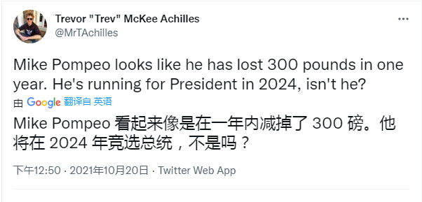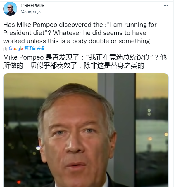 最近網友看到蓬佩奧的照片和採訪視頻,紛紛表示不敢認,這還是當年的“蓬胖”嗎?!