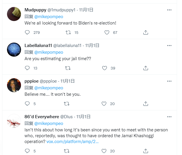 有網友發現,在蓬佩奧的表態中,與攻擊中國一樣頻繁的是抨擊拜登政府。還有網友説,現在蓬佩奧似乎就幹兩件事,罵拜登政府和罵中國。