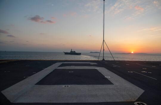 這一消息也得到了日本自衞隊方面的印證。日本共同社11月4日報道稱,日本海上自衞隊當天發佈消息稱,日本“伊勢”號直升機航母等共7艘艦艇與美國海軍的“美利堅”號兩棲攻擊艦在東海實施了聯合訓練。