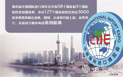 本屆進博會共有58個國家和3個國際組織參加國家展,來自127個國家和地區的近3000家參展商亮相企業展,國別、企業數均超上屆。業界預計,本屆成交額亦有望再創新高。