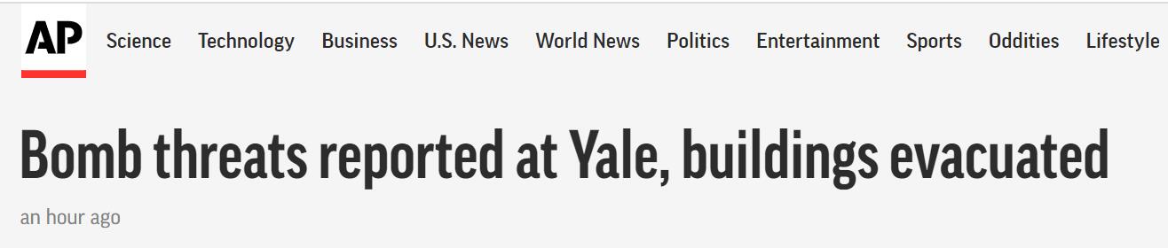 耶魯大學遭“40枚炸彈”威脅,FBI出動!