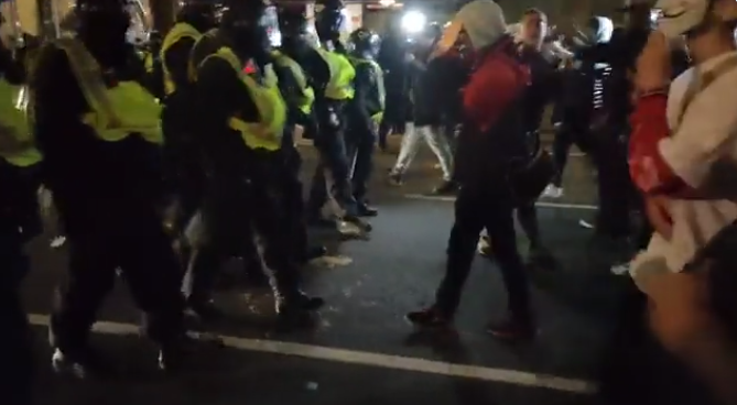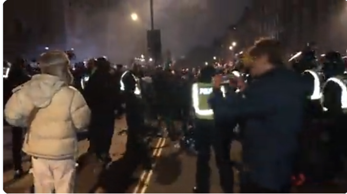 遊行過程中,警方還與抗議者發生衝突。倫敦警察廳在一份聲明中表示,“議會廣場上的一羣人燃放煙花和火箭,非常危險,”警方被迫“介入”。倫敦警方還表示,他們介入是為“清理煙花,防止人們受到傷害。”
