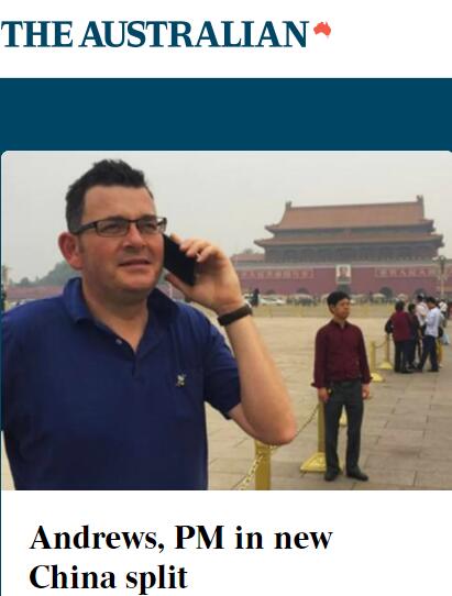 【環球網報道】“安德魯斯和莫里森陷入(有關)中國的新分歧。”《澳大利亞人報》5日以此為題刊載報道稱,澳大利亞維多利亞州州長安德魯斯再次與聯邦政府在對華政策上“分道揚鑣”,這次的緣由是維州政府參加了目前在中國上海舉行的第四屆中國國際進口博覽會(以下簡稱進博會)。《每日郵報》澳大利亞版評論稱,這是繼和北京簽署“一帶一路”合作協議後,安德魯斯第二次與澳總理莫里森產生衝突。