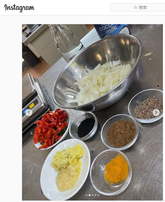 他還接連曬出烹飪的印度美食。↓