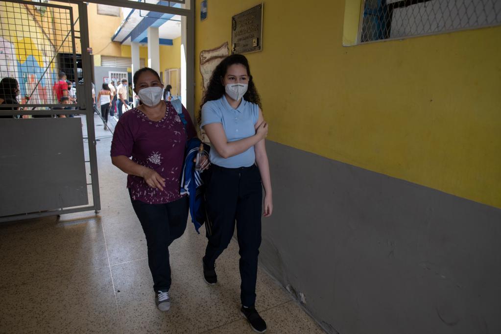 11月4日,在位於委內瑞拉首都市中心的“何塞·安潔爾·阿拉莫”中學,一名學生們接種完疫苗後離開。薩爾戈多攝