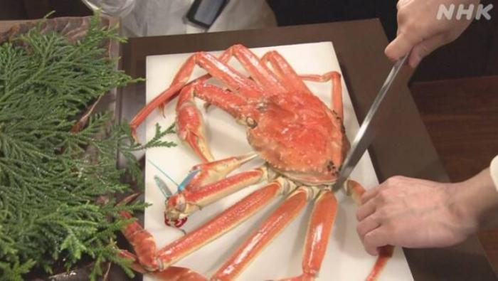 一隻價值500萬日元(約合人民幣30萬元)的帝王蟹。圖片來源:日本放送協會(NHK)報道截圖。