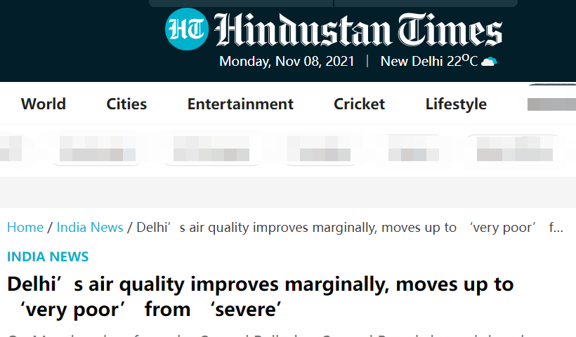 印媒:印度首都空氣質量終於有所改善,從“嚴重污染”變為“非常差”